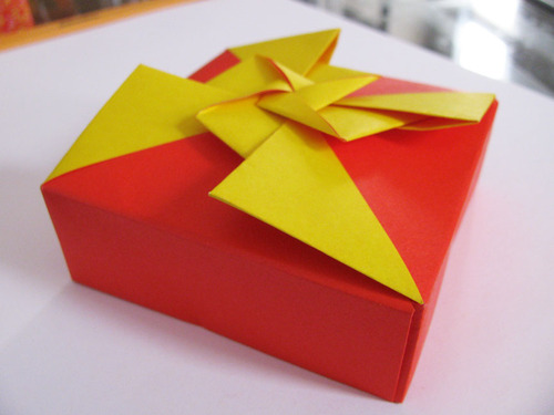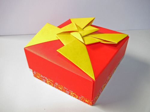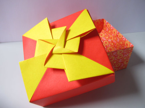 The box pattern was created by the celebrated origami master Tomoko Fuse, and can be found in her book Origami Boxes.
