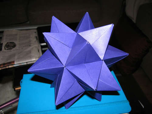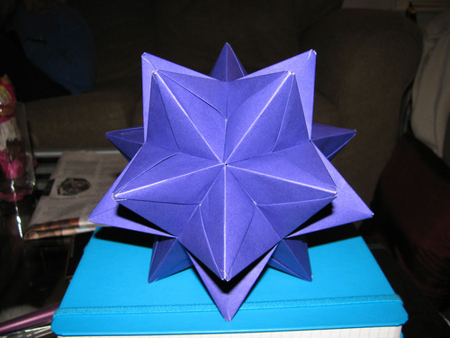 Once all of the units were folded, it took about half an hour to assemble the model. This is an alternate view - the five pointed star motif is repeated around the entire model.
