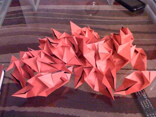 Folding the units themselves is straightforward, if time consuming. However, the units are connected internally within the model, which makes the final assembly quite a challenge.