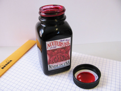 Noodler’s Shah’s Rose comes in a 3 oz. bottle that is filled to the brim. Noodler’s intentionally uses stock bottles and lids to keep their prices low, which means that they aren’t intended to be attractive in and of themselves. They are functional and stable, but not something one would display on one’s desk.