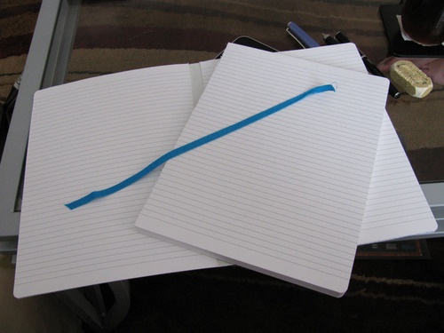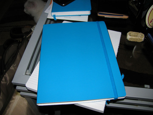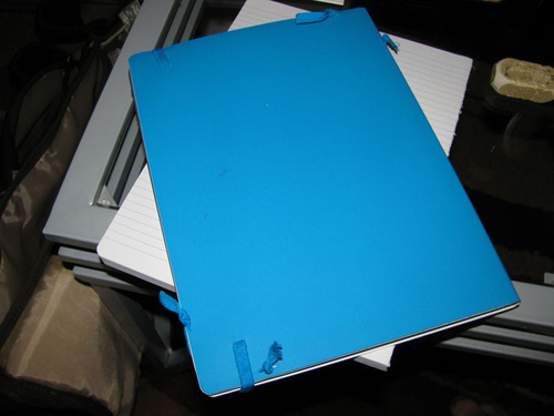 The fine folks at Ecosystem put out a call for people to hack their large notebooks in service of creating an iPad cover. I volunteered, and a large, flexi-cover, lagoon notebook showed up at my door a few weeks ago. I finally got a chance to play with the notebook today, and I think the hack turned out well.