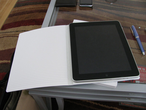 Here you can see the iPad sitting in its new home. Because it is slightly thicker than the iPad, the notebook has enough leeway to make up for the narrower width.