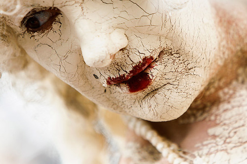 For example, the picture above is of a woman in costume at the Carnival of Cultures Parade in Berlin. Let’s strip away that context and create a new one. She looks a little bit like a porcelain doll – an aged and weathered living doll. Perhaps she lives in a world where opulence means having living artwork, where having a gallery full of sentient statuary is a display of wealth. If so, did her owner go bankrupt and lose his collection? Has she been moldering in a warehouse for a decade? What options would be available to her, now that she’s no longer in mint condition?