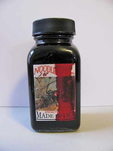 Noodler’s Widowmaker comes in a 3 oz. bottle that is filled to the brim – so be careful when opening. See the picture above for what a gentle bump to the very, very full bottle can do. Noodler’s intentionally uses stock bottles and lids to keep their prices low, which means that they aren’t intended to be attractive in and of themselves. They are functional and stable, but not something one would display on one’s desk.