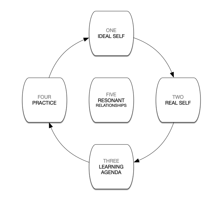 Resonant Relationships – the last discovery is the development of supportive relationships. Change doesn’t have to be scary, but it is rarely easy. Resonant relationships will help you to complete each step of the process as well as to move from one discovery to the next. They can provide an editorial voice when preparing your Learning Agenda, a critical eye when discovering your Real Self, positive energy when discovering your Ideal Self, and emotional support when Practice gets hard.
